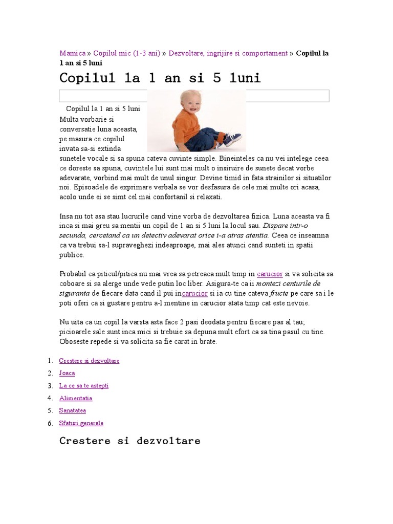 Copilul La 1 An Si 5 Luni