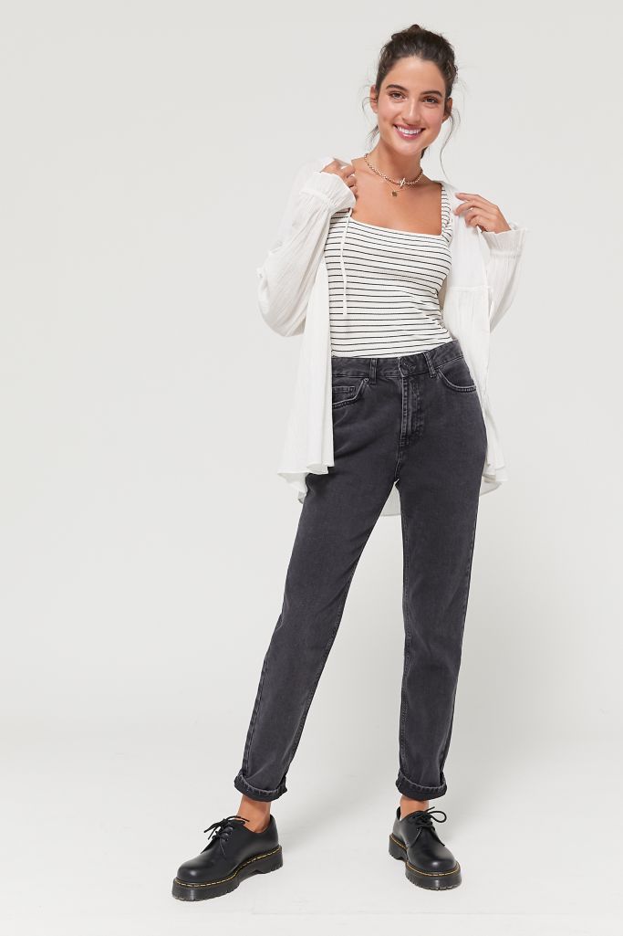 Bdg High Waisted Mom Jean Washed Black Denim Urban Outfitters