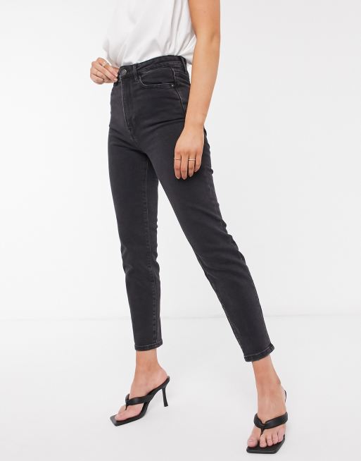 Stradivarius Petite Slim Mom Jean With Stretch In Black Asos