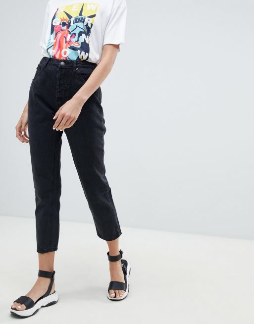 Stradivarius Slim Mom Jean With Stretch In Black Asos