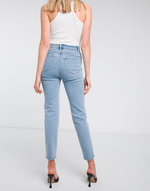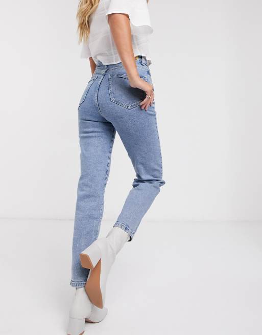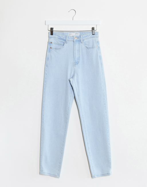 Stradivarius Slim Mom Jean With Stretch In Light Blue Wash Asos